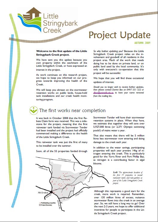 | Information brochure on Little Stringybark Creek, used in promotion of Stormwater Tender (2008) | PDF |